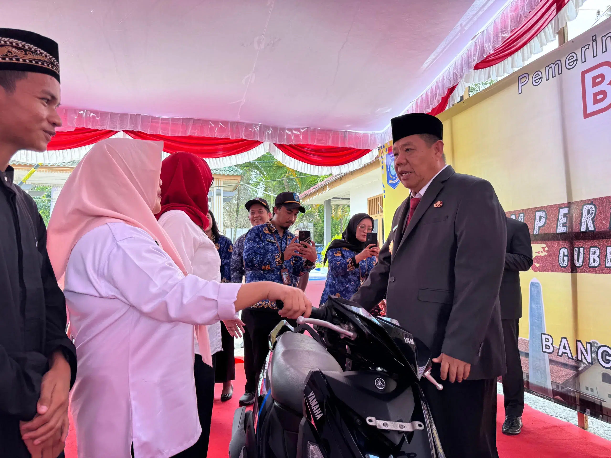 Kegiatan yang berlangsung di Kantor Dinas Sosial dan Pemberdayaan Masyarakat Desa (Dinsos PMD) Provinsi Kepulauan Bangka Belitung, Air Itam, tersebut dihadiri langsung oleh Gubernur Kepulauan Bangka Belitung, Hidayat Arsani, bersama Penjabat Sekretaris Daerah Fery Afriyanto, jajaran Forkopimda, kepala perangkat daerah, serta para lurah, kepala desa, dan masyarakat penerima bantuan.
